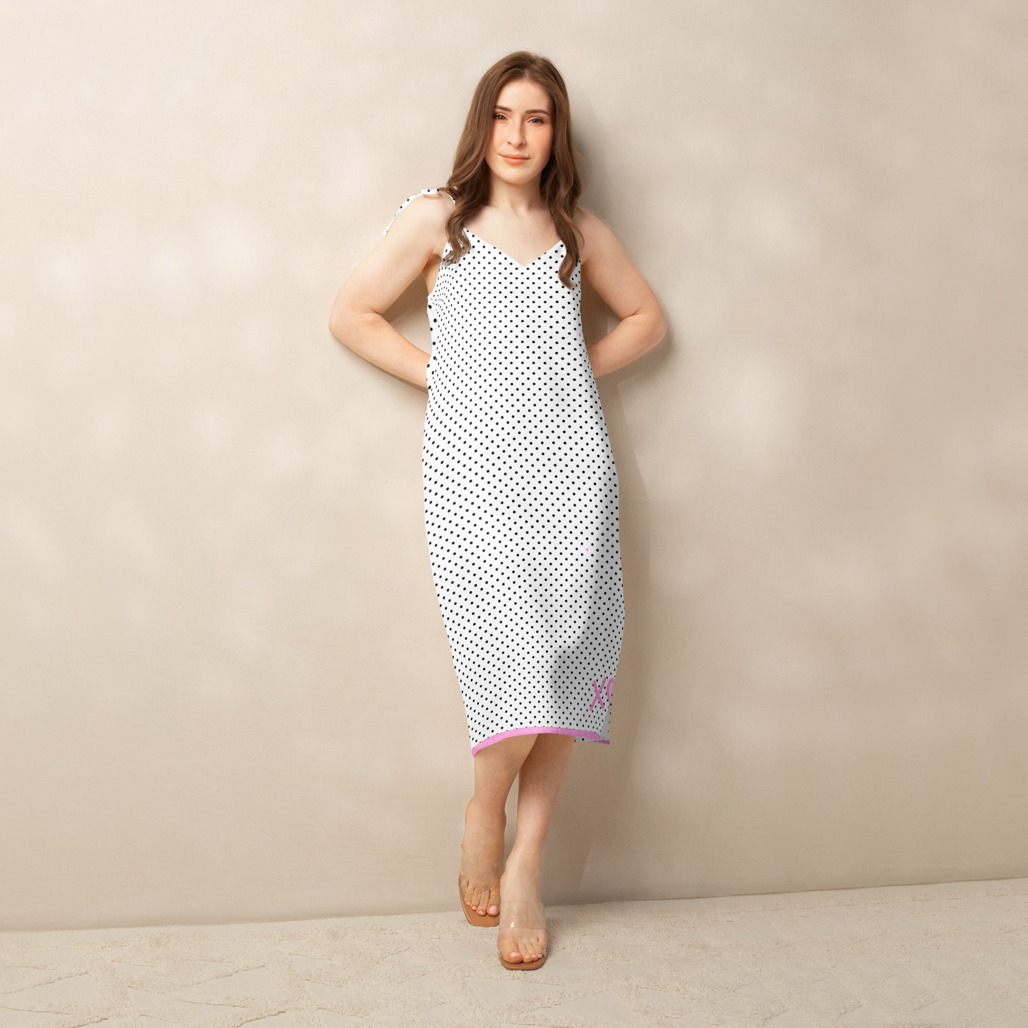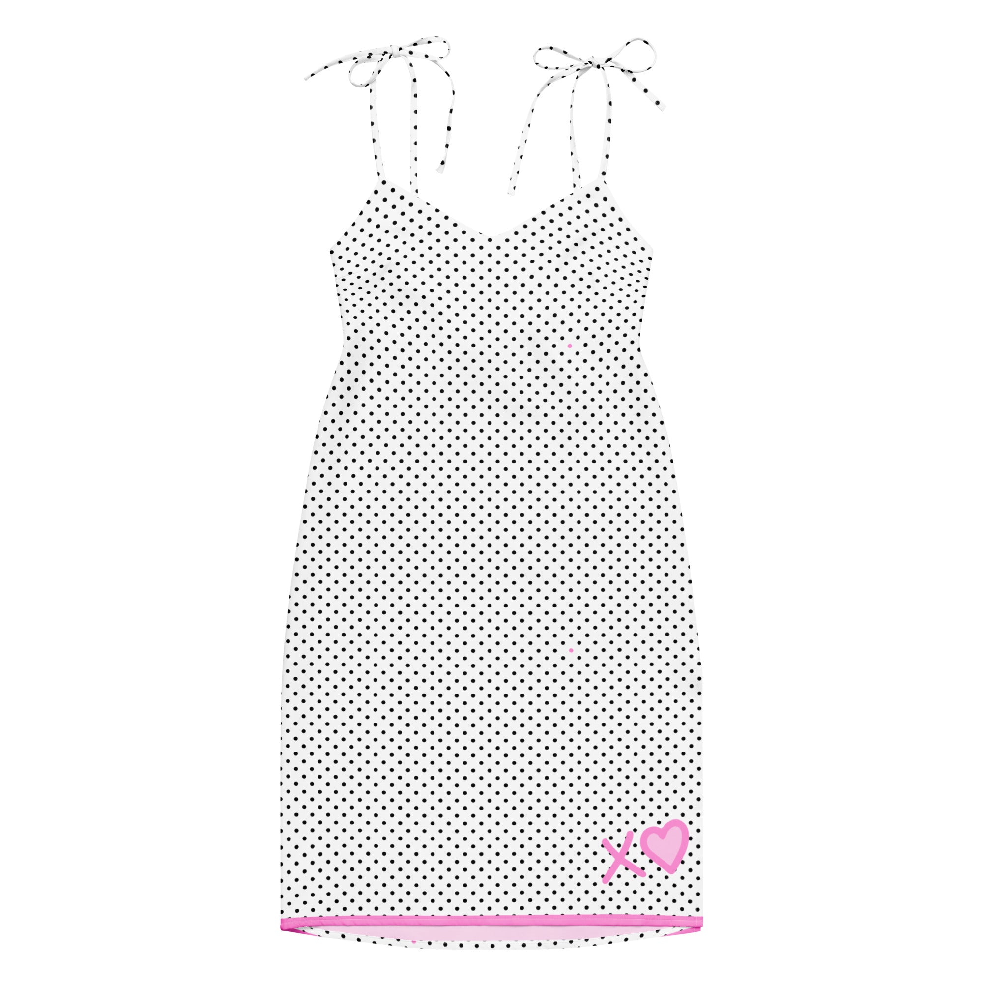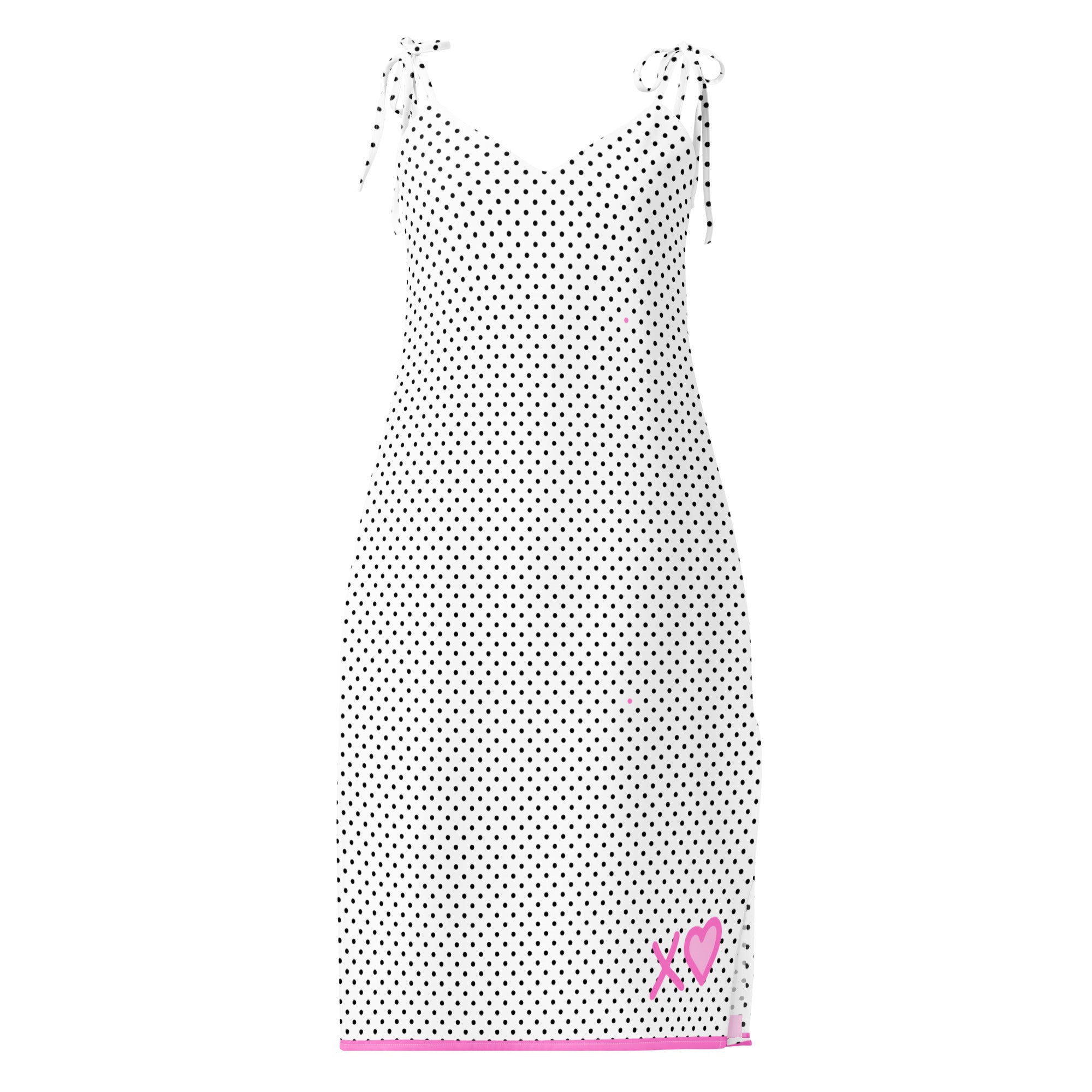 Pop of Pink Polka Dot Tie-strap midi dress